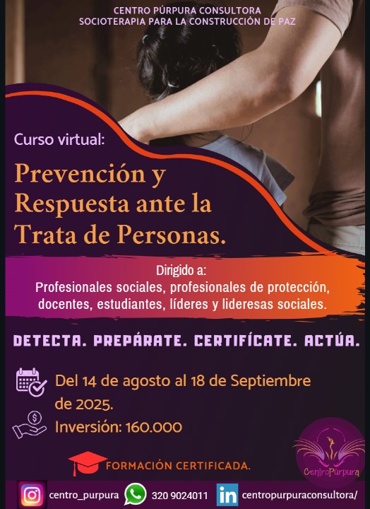 Para ello es necesario que fortalezcamos nuestros conocimientos y capacidades de actuar, para liderar gestiones transformadoras en prevención y la protección, pero también, para brindar a las personas sobrevivientes de la trata y a las poblaciones en riesgo, servicios humanizados como apoyo psicosocial, acceso a justicia, y rutas de restablecimiento de los derechos que les han sido vulnerados.